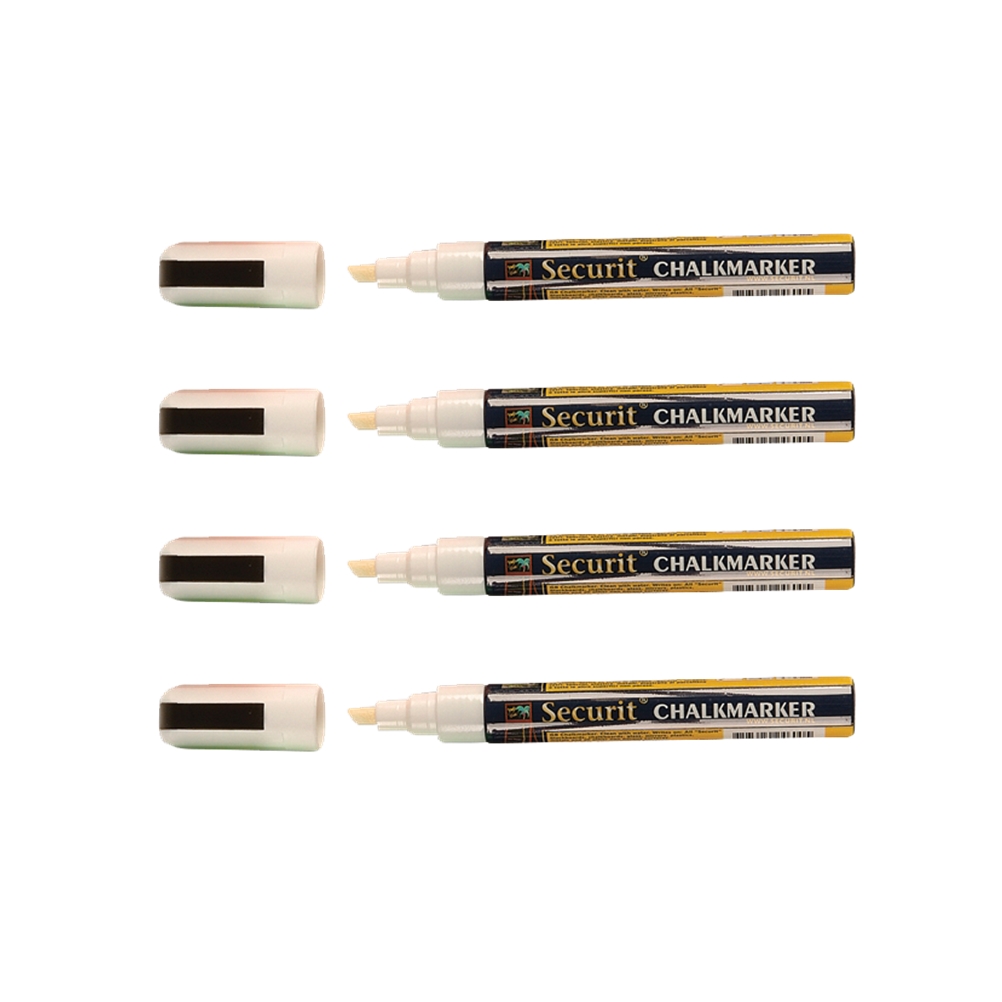 ΣΕΤ 4 Μαρκαδόροι ΑΔΙΑΒΡΟΧΟΙ υγρής κιμωλίας με μεσσαία μύτη, σε χρώμα Λευκό, SECURIT