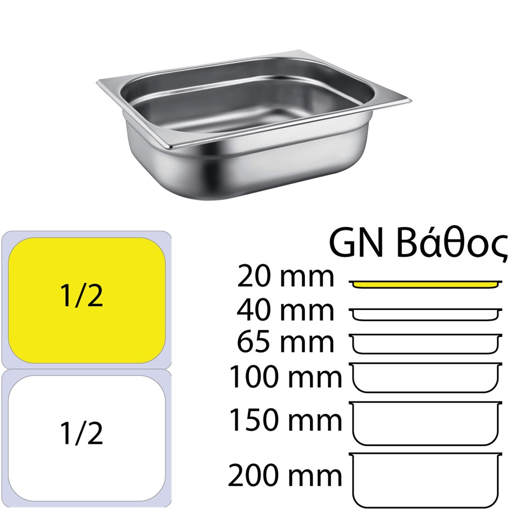 Δοχείο γαστρονομίας GN1/2, Inox SS201, 0.6mm, (32.5x26.5cm)-2cm