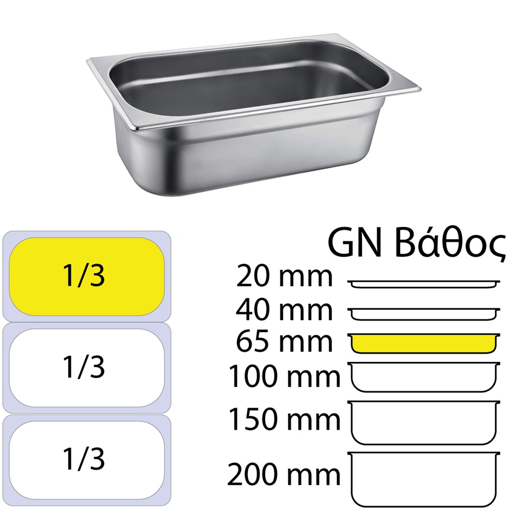 Δοχείο γαστρονομίας GN1/3, Inox 18/10 (SS304), 0.6mm, (32.5x17.6)-6,5cm