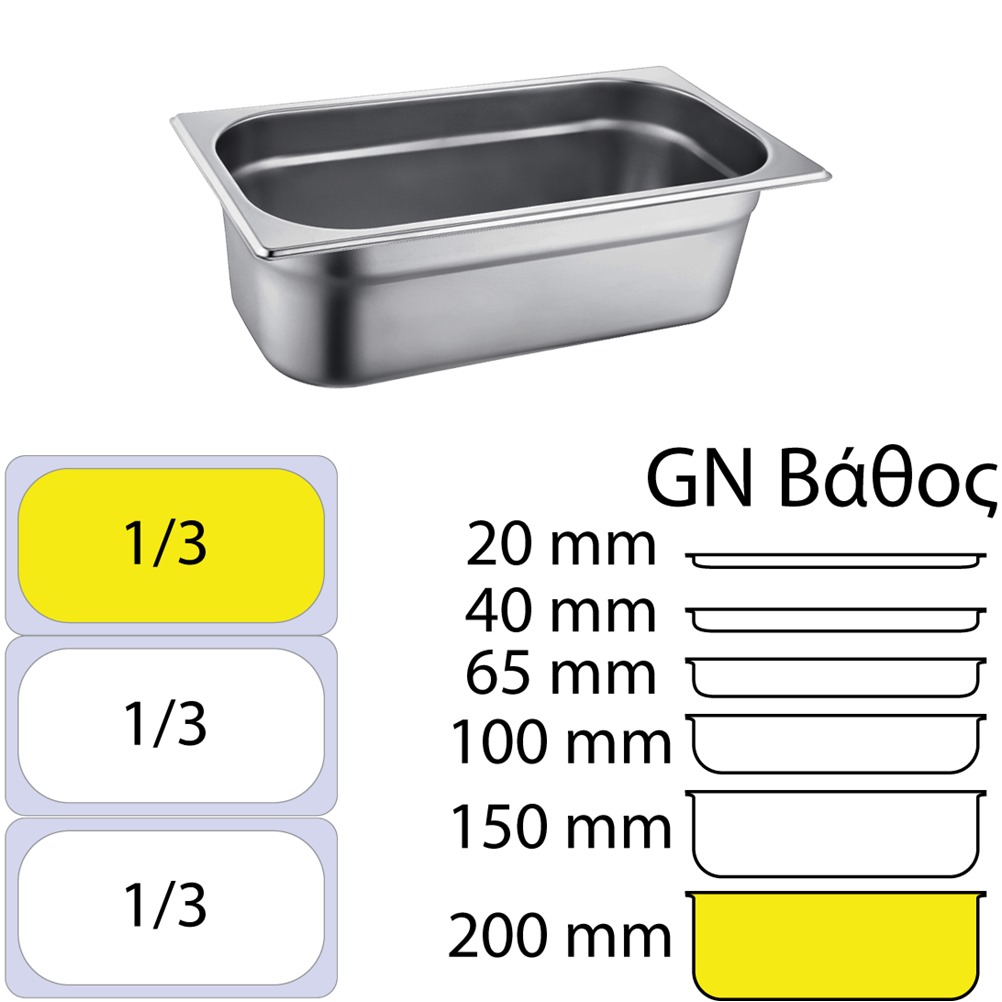 Δοχείο γαστρονομίας GN1/3, Inox 18/10 (SS304), 0.7mm, (32.5x17.6)-20cm
