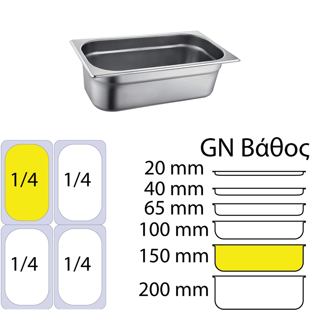 Δοχείο γαστρονομίας GN1/4, Inox 18/10 (SS304), 0.7mm, (26.5x16.2cm)-15cm