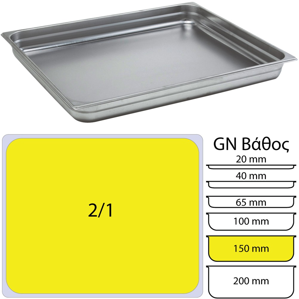 Δοχείο γαστρονομίας GN2/1, Inox 18/10 (SS304), 0.8mm, (65x53cm)-15cm