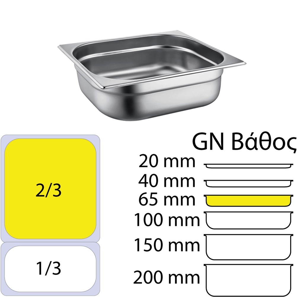 Δοχείο γαστρονομίας GN2/3, Inox 18/10 (SS304), 0.6mm, (35.4x32.5)-6.5cm