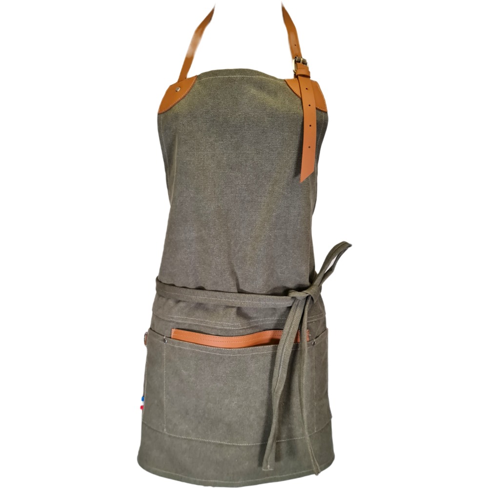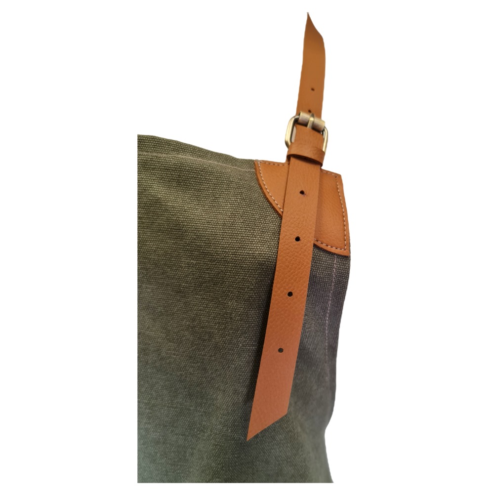 Ποδιά μπροστέλα ART 70xΥ100cm, αδιαβροχοποιημένο ύφασμα, με δερμάτινες λεπτομέριες, Χακί/Κάμελ, Sonolys