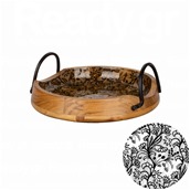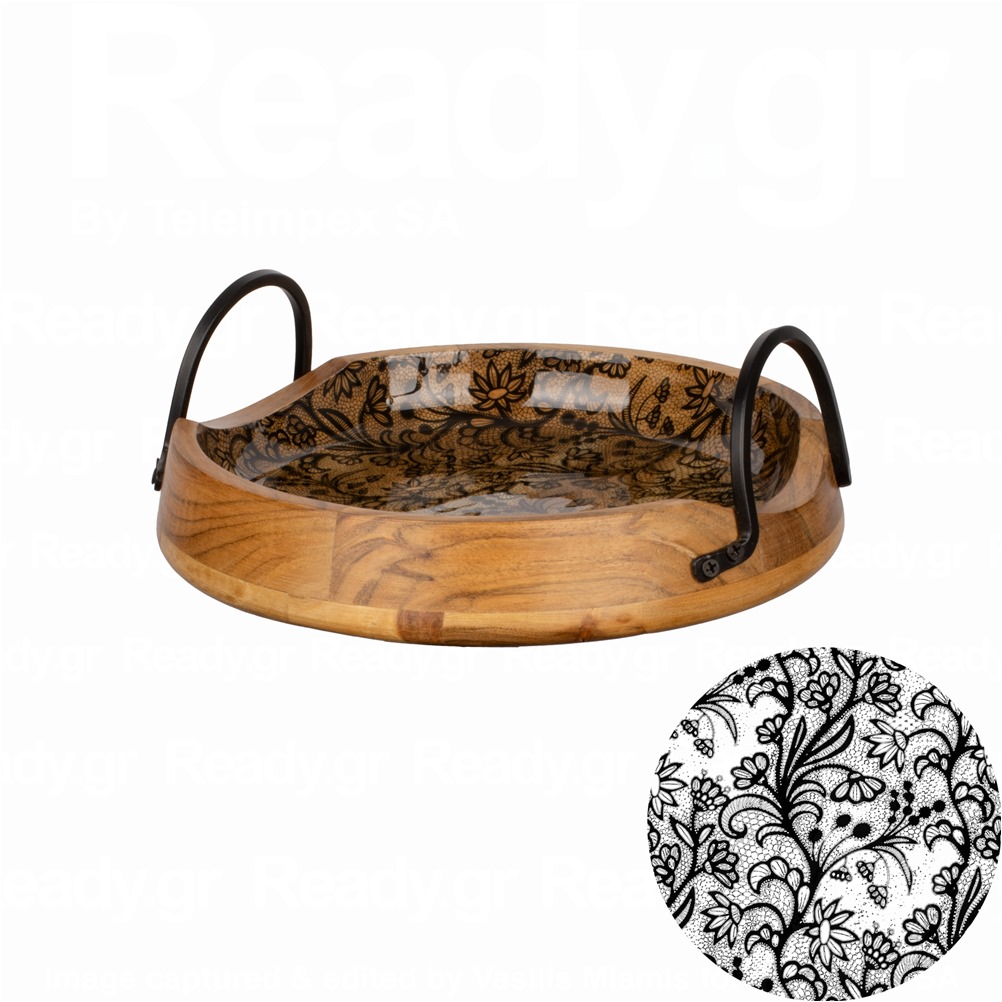 Δίσκος Βαθύς με χερούλια, απο Ξύλο Ακακίας, με Επένδυση Ρητίνης, σε Φυσική Απόχρωση με Μαύρο Σχέδιο, φ30xΥ12.5cm.