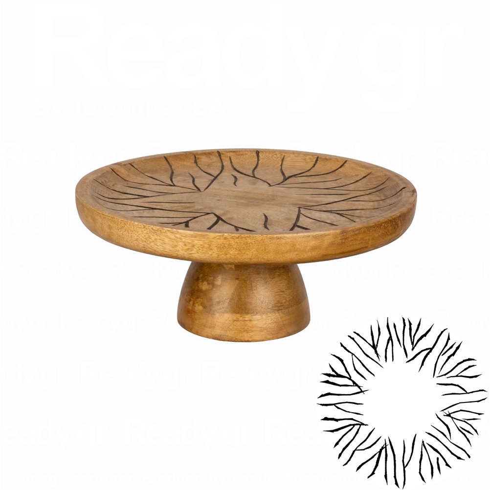Τουρτιέρα με πόδι, απο Ξύλο Mango, Σκαλιστό Σχέδιο, σε Φυσική Απόχρωση, φ30xΥ12.5cm,