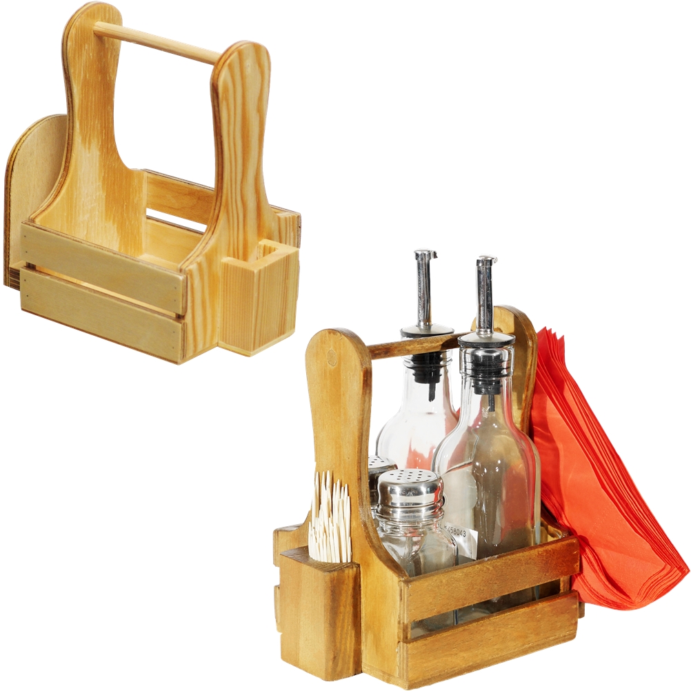 Ξύλινη θήκη (χωρίς τα δοχεία) για λαδόξυδο, αλατοπίπερο, χαρτοπετσέτες, οδοντογλυφίδες