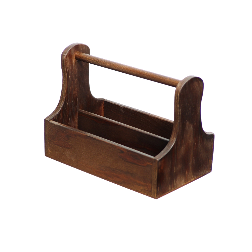 Ξύλινη θήκη, βαλιτσάκι 25x15x18cm, για αλατοπίπερα, λαδόξυδα, μύλους..., σκούρο καφέ