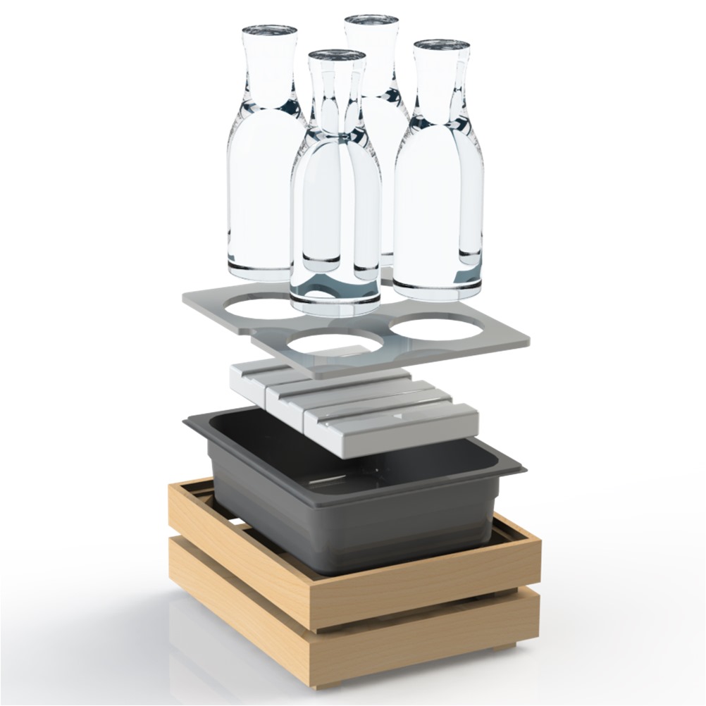 Ψυχόμενη Βάση μπουκαλιών απο Ξύλο Bamboo και Plexi Frost Επιφάνεια, με 4 Φιάλες 1lt, σε Φυσική Απόχρωση, 32,5x26,5xΥ36cm, Crate, Garibaldi
